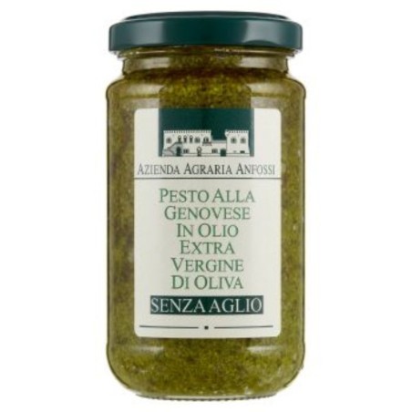 Scopri il pesto alla genovese senza aglio Anfossi, preparato con basilico fresco e olio extra vergine di oliva. Gusto autentico ligure, delicato e digeribile. Perfetto per primi piatti e ricette gourmet.